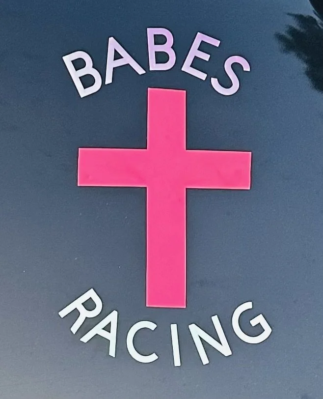 The BABES racing logo came about as I started to add pink to my car. I wanted people to know that I was a girl, defying odds against me, driven by God keeping Him at the center of all I do. (hence the cross)The dream one day is to have Bad Ass Baileys Engine Shop- AKA BABES. Currently BABES has turned into Bad Ass Baileys racing.